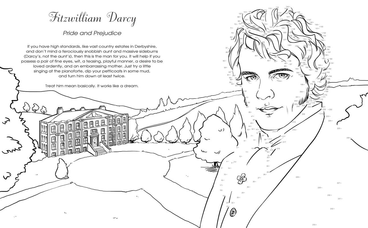 A fun and quirky connect the dot book perfect for those who love their coloring served with a Mr. Darcy-sized dash of romantic fiction! It's a truth universally acknowledged that a romantic person in possession of a good set of colored pencils must be in want of a Dot to Hot coloring book! This book is brimming with over 40 connect the dots pictures of literary lovers and heart-throbs. From heroes and romantics to rebels and villains, all are waiting to be lovingly completed by you as you connect the dots to create Mr. Darcy and Mr. Wickham from Pride and Prejudice, Mr. Rochester from Jane Eyre, Marius from Les Misérables, Romeo from Romeo and Juliet, Willoughby from Sense and Sensibility, and many more. After you connect the dots, you can color in all these romantic heroes, rebels, and villains!