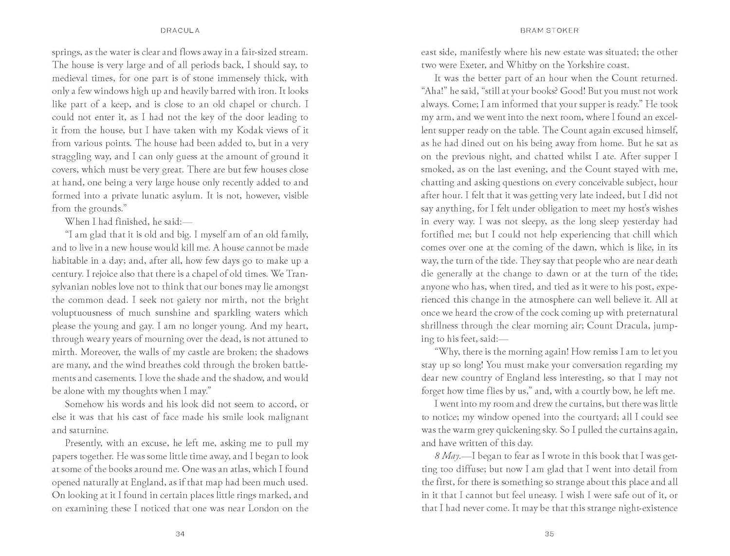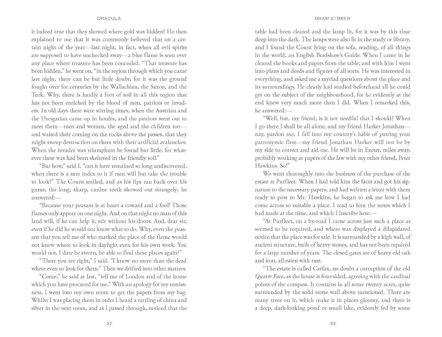 As fledgling English lawyer Jonathan Harker treks into the Carpathian Mountains to complete a real estate transaction, frightened peasants warn him of horrible dangers that await him. Harker, terrified by eerie events along the way, finally meets his client, Count Dracula, a tall, gaunt old man with a surprisingly powerful handshake. Harker soon realizes that he is a prisoner in Dracula's sumptuously furnished castle—a castle strangely devoid of mirrors. Later, as fifty coffin-sized boxes are brought into the castle in preparation for Dracula's departure, Harker knows that the count plans to do more in London than see the sights—and fears that the rational modern world is ill-equipped to recognize, let alone defeat, the count. Hardcover Book with Printed Laminated Cover; 4 3/4 X 7 inches; 432 pages.