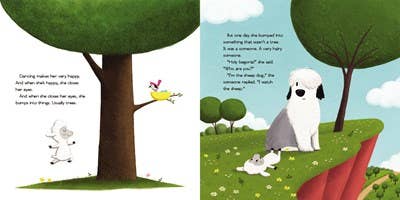 Sheep is surprised one happy afternoon when she bumps into a very hairy someone on the farm. “Who are you?” she asks. “I’m the sheep dog!” the someone says. “I watch the sheep.” Holy begonia! Sheep knows this can’t be right. After all, she’s the sheep expert! Besides, how can this sheep dog see anything with so much hair in his eyes? Or without a map? Sheep goes off to get everything Sheep Dog needs to get the job done, but each time she goes, something almost happens to her—and who comes to her rescue? Take one guess. With lots of humor and a fabulous farm setting, Sheep Dog and Sheep Sheep follows an accidental friendship that is irresistible from the first page.